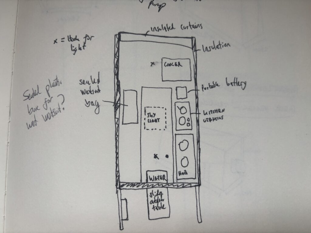 - What materials will be used? I went for Ply wood for panels and frame, and carpet for others bits of exposed metal (you don’t want any exposed metal as otherwise you could get condensation and get water dripping on you)