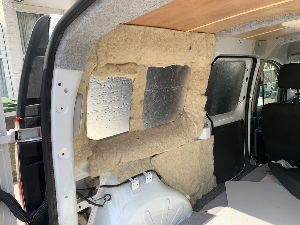 - Insulation – I went into a deep rabbit hole about what insulation material to use. There’s a lot of info out there and a lot of it is contradictory, especially when it comes to if you should use foil insulation to line the whole van or not. My personal conclusion was that lining everything in foil wasn’t worth it. Maybe it was if you could create a complete seal with it and have an air gap, but I was never realistically going to be able to do this. So I went for this 20mm thick PIR board for big flat spaces and this thermafleece sheeps wool for the rest (more sustainable than using the synthetic stuff, and it worked perfectly, although it did smell of a barn for a while).