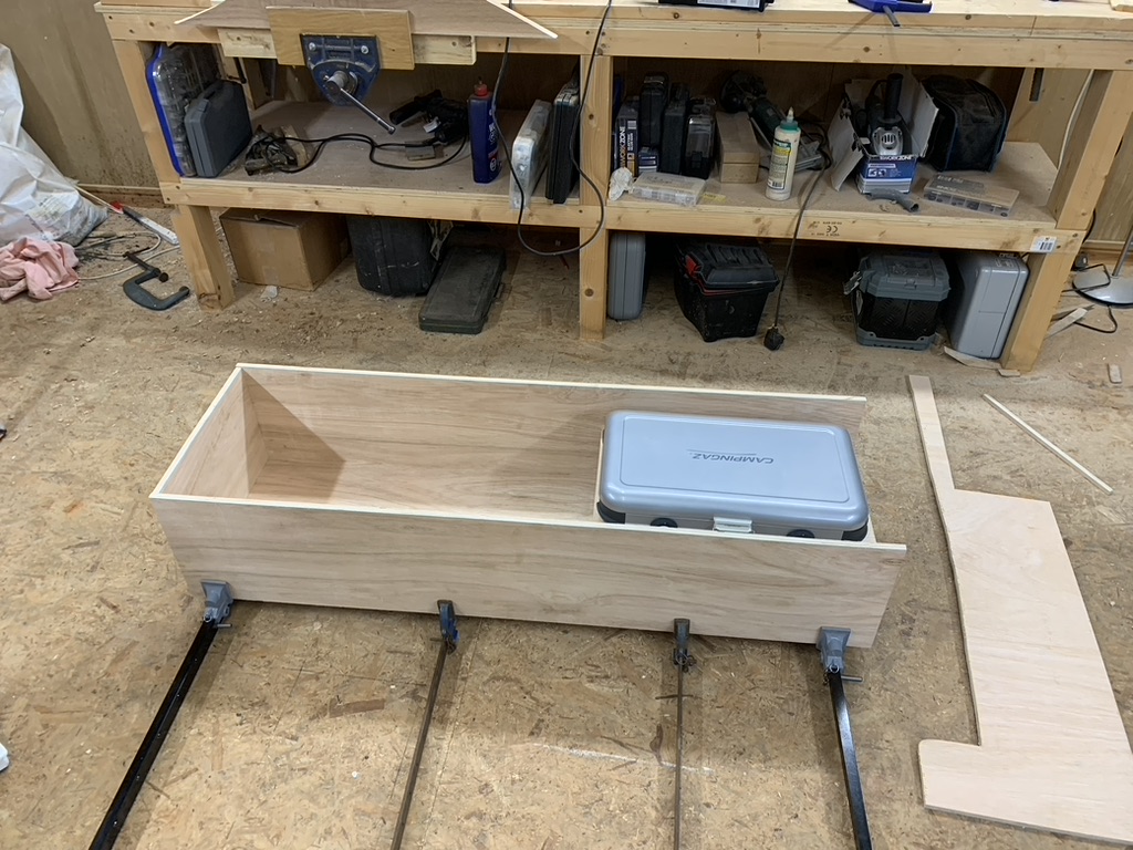 6. Bench frame Part 1: Design, measure, and get first cuts done for bench frame. Lightly screw together. Order drawer rollers for frame.